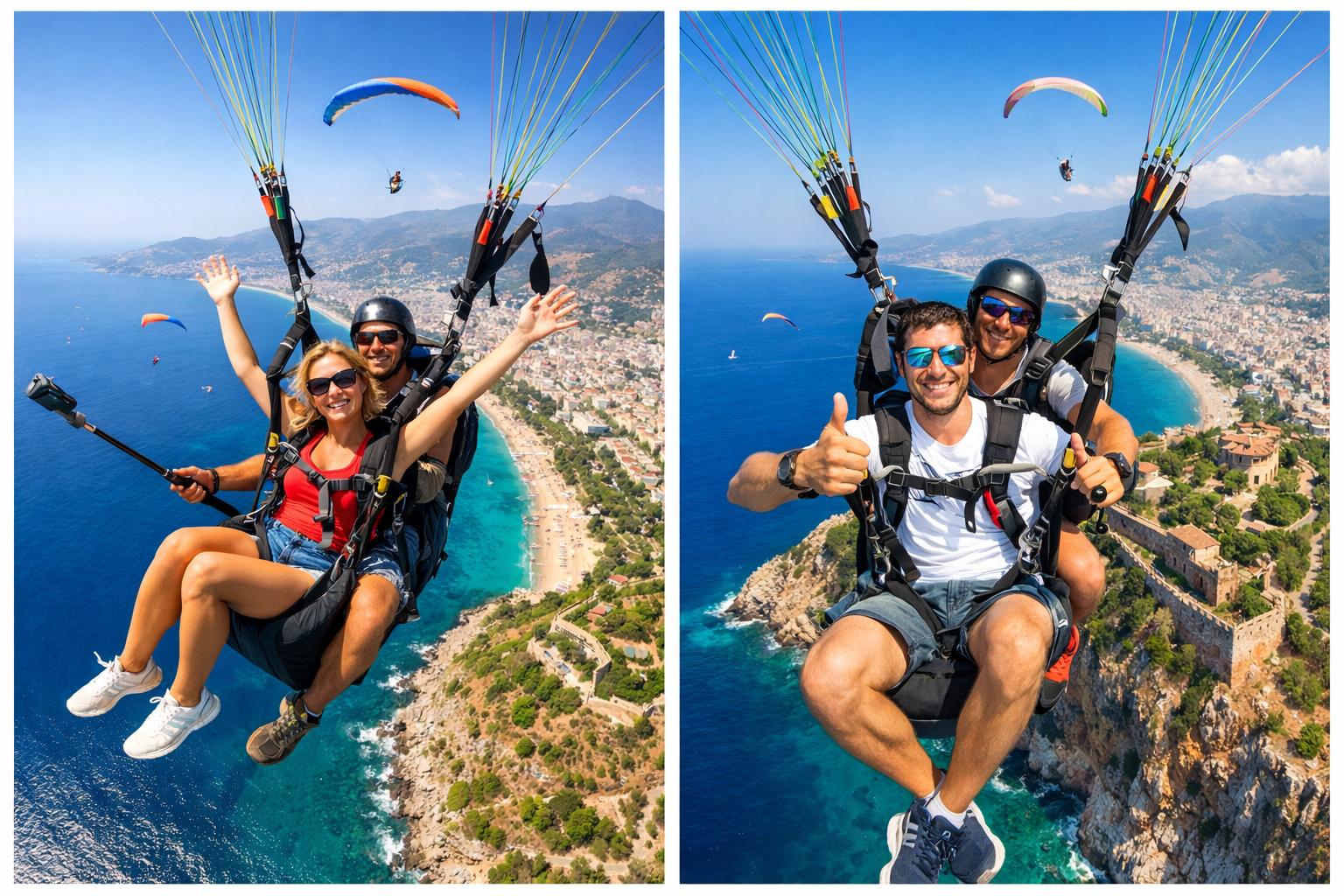 Tandem-Gleitschirmfliegen in Alanya ist eine entspannte und zugleich eindrucksvolle Art, die Mittelmeerküste aus einer neuen Perspektive zu entdecken. Der gesamte Ablauf ist klar organisiert, angenehm und unkompliziert — ideal auch für alle, die zum ersten Mal fliegen.