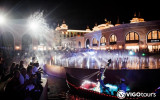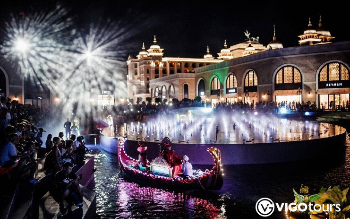 Die Abendshow findet etwa 650 Meter vom Haupteingang entfernt, im Bereich von Kanal und Fontänen, statt — der Zugang erfolgt ausschließlich zu Fuß, da innerhalb des Komplexes keine Fahrzeuge erlaubt sind.