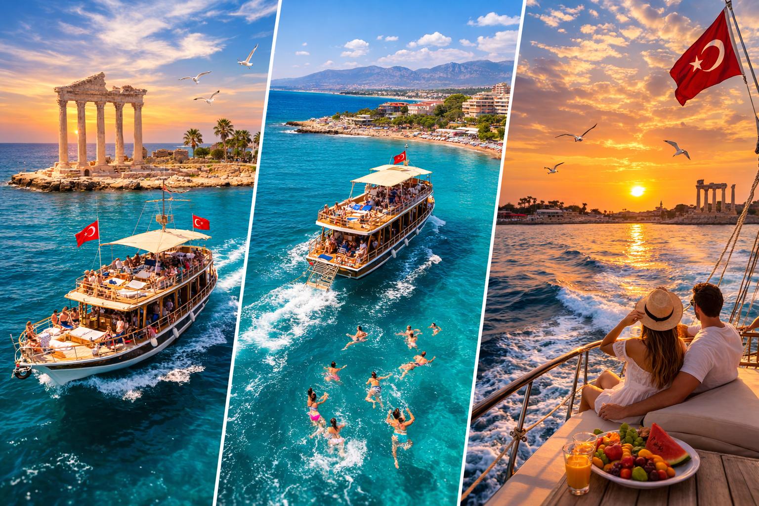Eine der schönsten Möglichkeiten, die Umgebung von Side zu entdecken, ist eine Bootstour. Entlang der türkischen Riviera gibt es zahlreiche Buchten, türkisfarbenes Wasser und beeindruckende Landschaften, die man am besten vom Wasser aus erlebt.