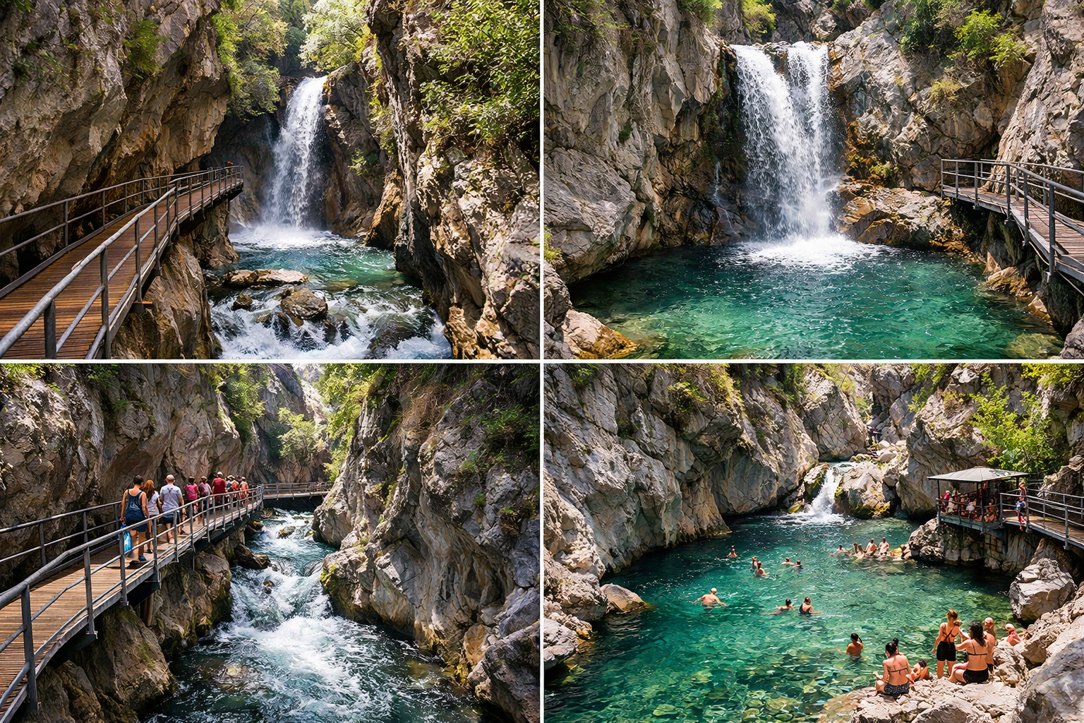 Nach der Ankunft beginnt die geführte Wanderung durch den Sapadere Canyon. Sie spazieren über gut gesicherte Holzstege entlang von Felswänden, Wasserfällen und natürlichen Pools. Während der Tour erfahren Sie mehr über: