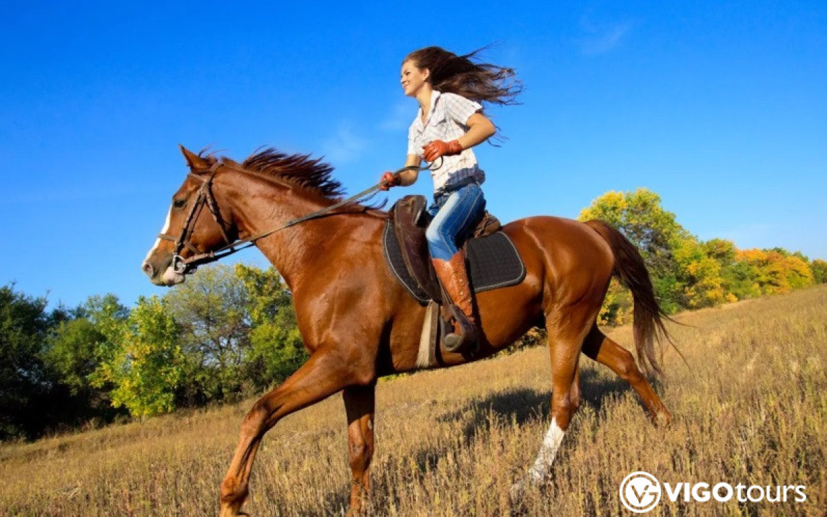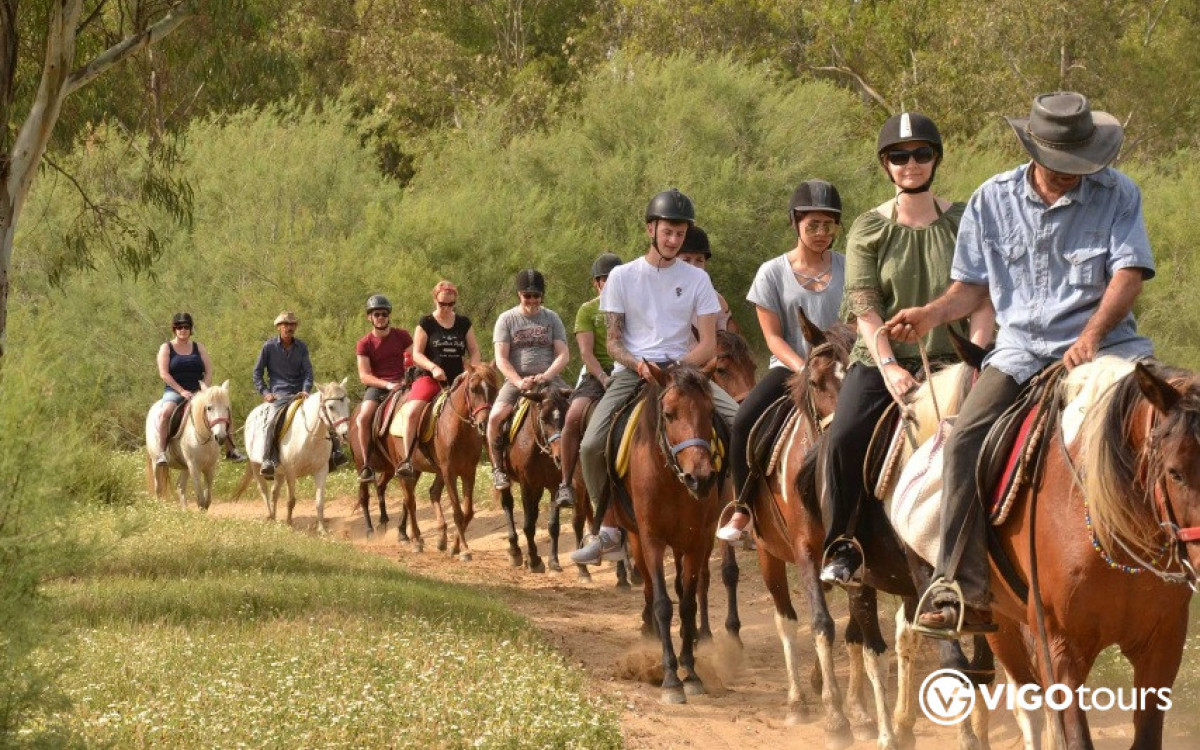 The tour lasts at least 1 hour and is usually organized in small groups — typically up to 10 riders with 10 horses — ensuring safety and comfort.
