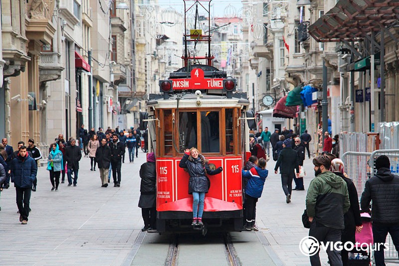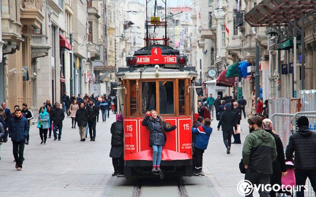 Istiklal Street, which is 1.5 km long and consists of a pedestrian path from Taksim Square to the Tunnel, is a randomly scattered music and bookstores, cinemas and cultural centers, cafes, restaurants and bars, banks and offices, shopping stores and bazaars, consulates and embassies. It is full of churches, historical arches and passages.