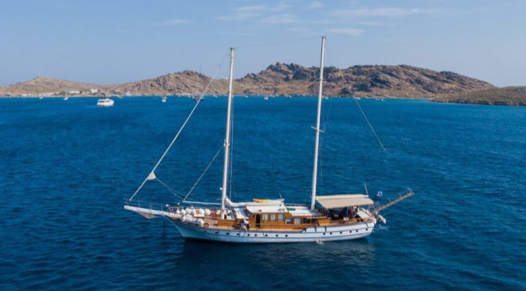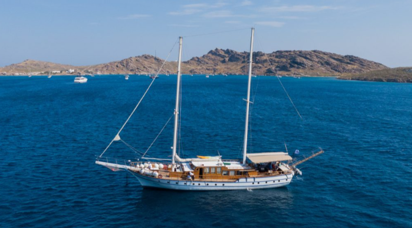 The Aegean and Ionian seas each hold their own character: one day you anchor beneath cliffs where the water glows emerald, the next you step into a small harbour where tavern lights shimmer on the surface at night. Islands come one by one like chapters in a story — Symi with its pastel neoclassical charm, Chalki glowing gold at sunset, Tilos slow and peaceful, Corfu lush and green, Zakynthos dramatic with sheer limestone walls, Hydra timeless and car-free, Syros elegant, Mykonos alive and bright.