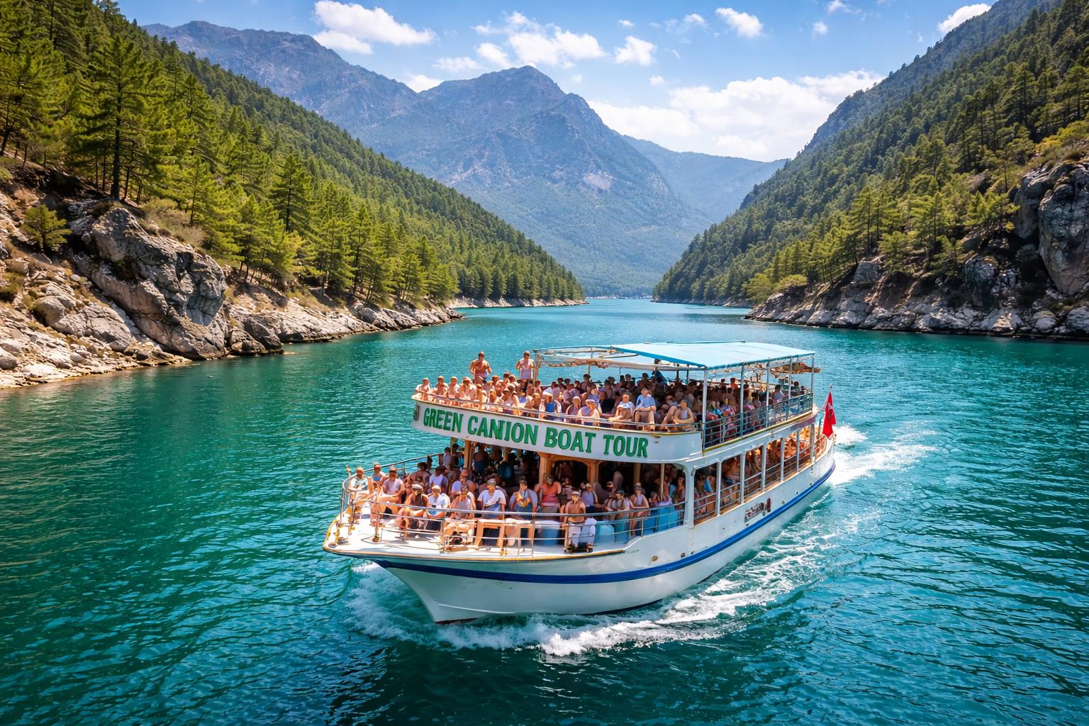 The Green Canyon is located near the Oymapınar Dam and is famous for its emerald-colored water surrounded by steep cliffs and forest landscapes.