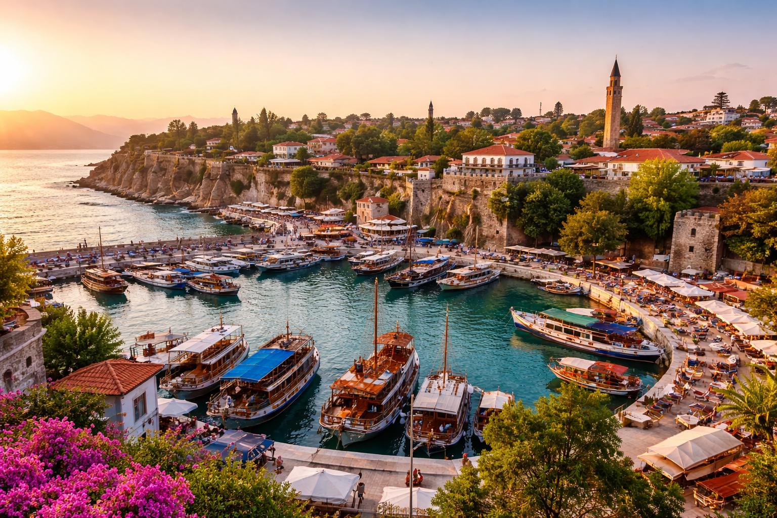 The historic Kaleiçi district features narrow streets, Ottoman houses, boutique hotels, and beautiful sea views.