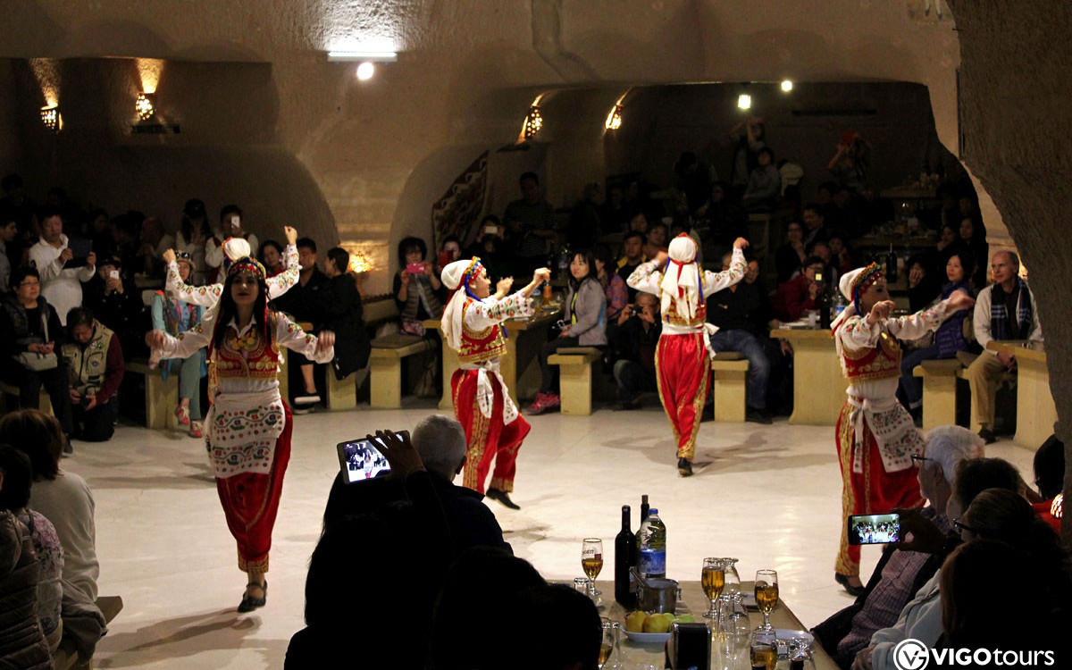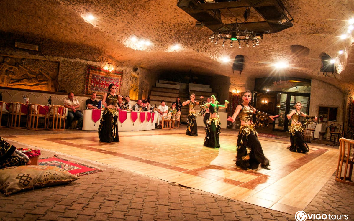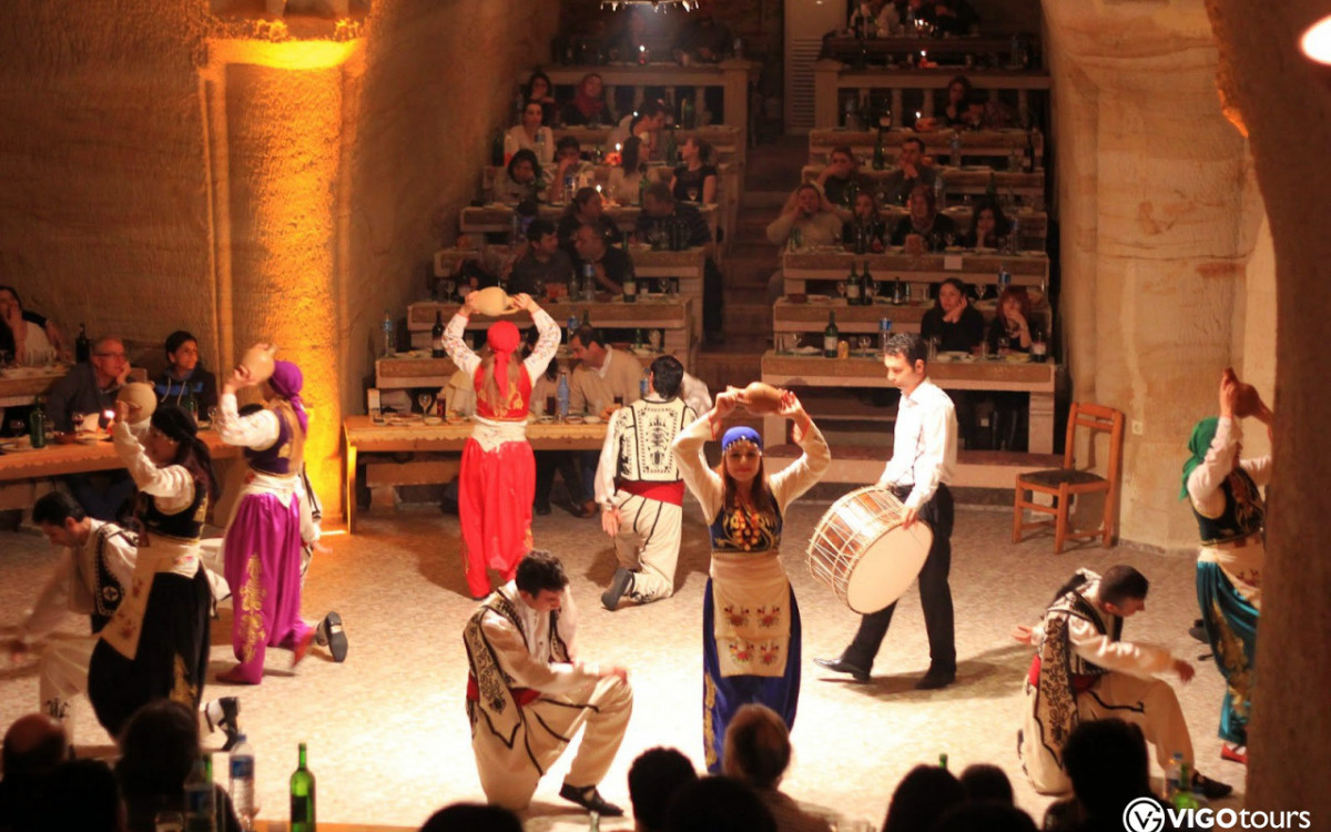 Poznaj turecką kulturę i tradycje, ciesząc się wyjątkowym pokazem w Kapadocji. Baw się razem z artystami, ciesz się lokalnym winem, przystawkami oraz kolacją, biorąc udział w nocnym pokazie w jednej z restauracji w jaskiniach Kapadocji.