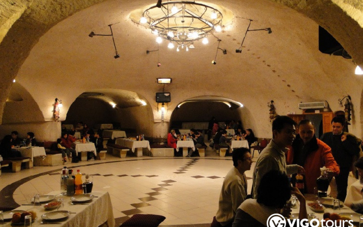 Kolacja stanowi istotną część tego doświadczenia — serwowane są tradycyjne dania kuchni tureckiej, przygotowane z lokalnych składników i podawane z regionalnymi winami.