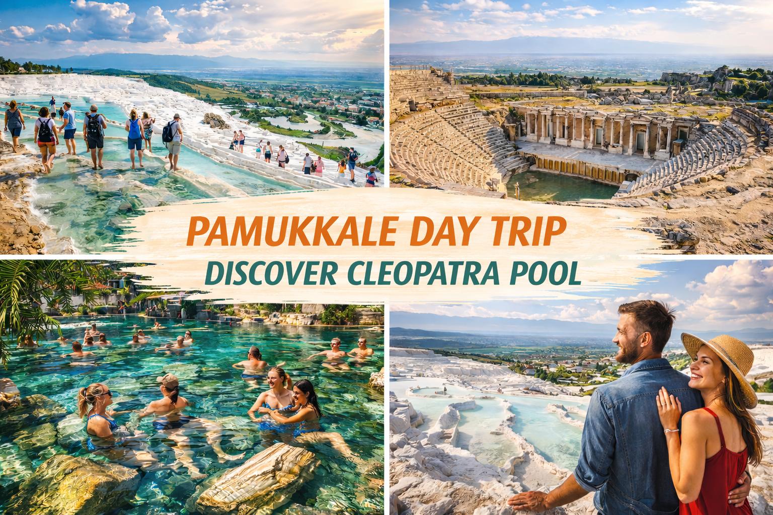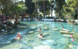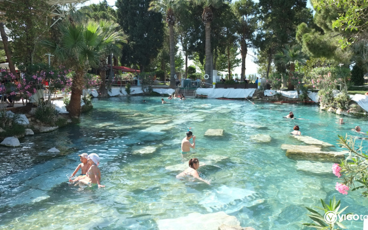 - Basen Kleopatry: Skorzystaj z opcjonalnej kąpieli w termalnym Basenie Kleopatry, otoczonym zatopionymi rzymskimi kolumnami i wypełnionym wodami bogatymi w minerały (dodatkowo płatne).