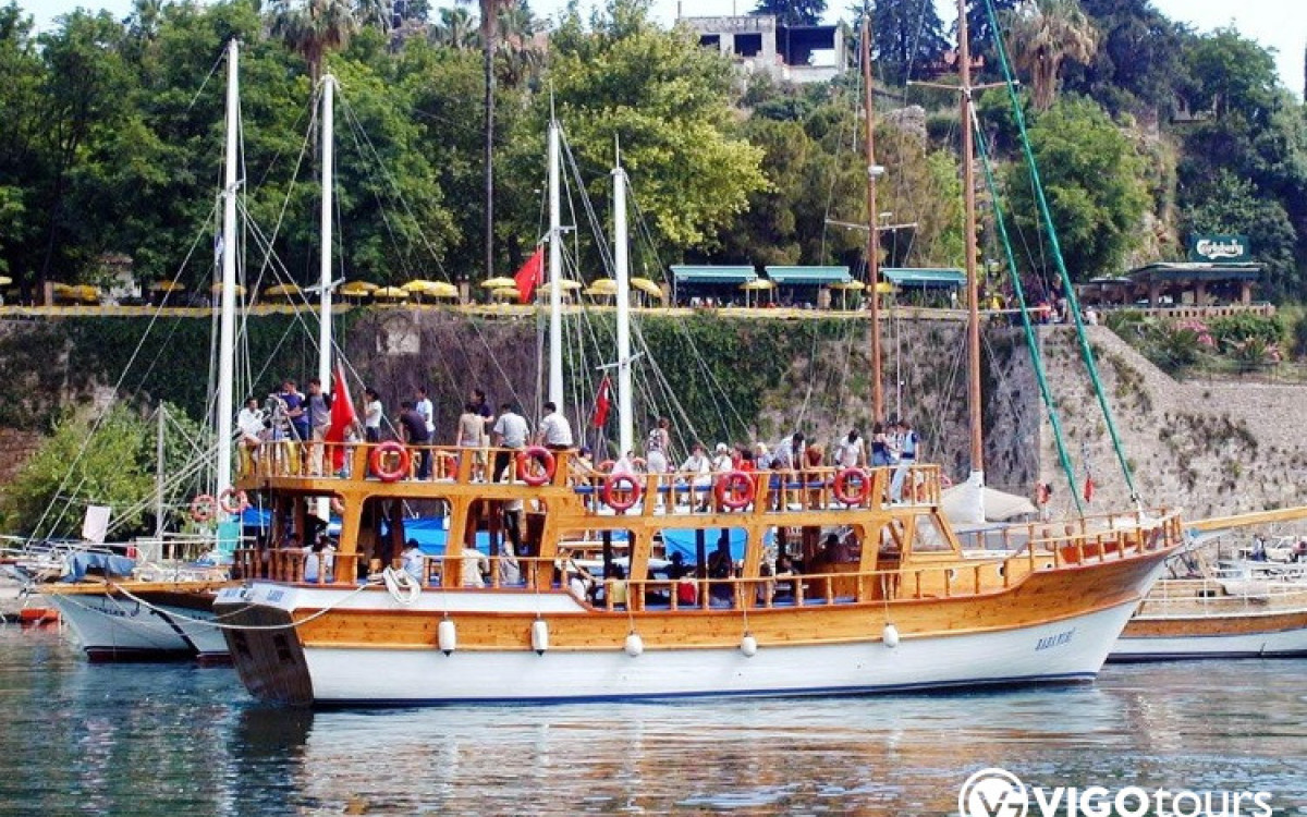 Прогулка на лодке по заливу Анталии — одна из самых приятных частей экскурсии. Во время круиза вы увидите скалистое побережье, сможете искупаться в бирюзовых водах и насладиться солнечным морским пейзажем.
