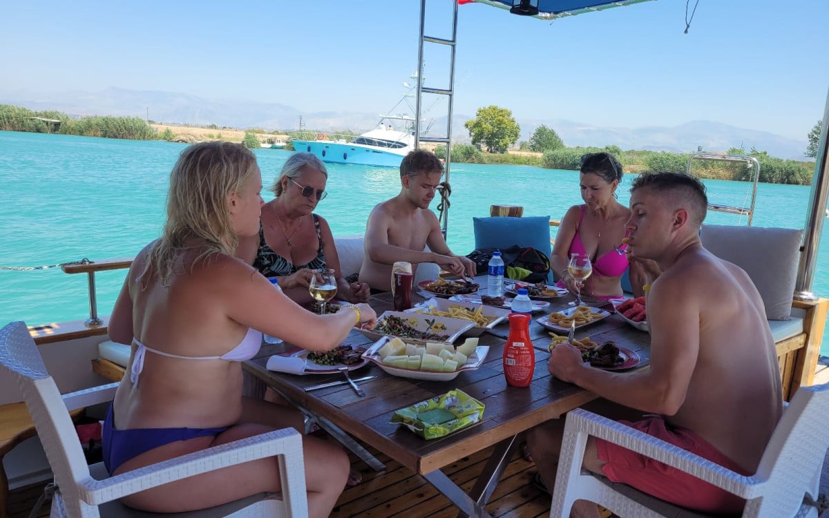 - Отправление: Лодка отправляется из порта Сиде или реки Манавгат в 10:00.