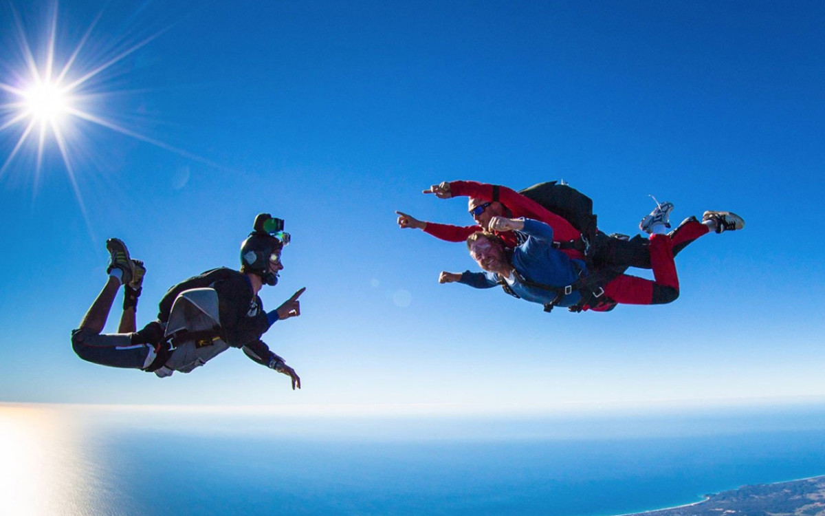 - Tandem skydive (freefall + parachute descent)