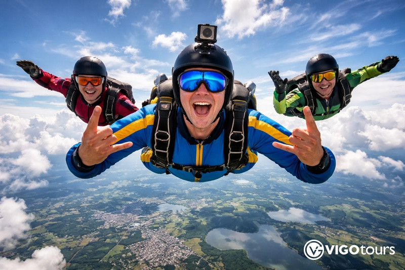 At the exit point, you leap into open air and experience 45–60 seconds of freefall, reaching speeds of over 200 km/h. This is the most intense and unforgettable part of the experience.