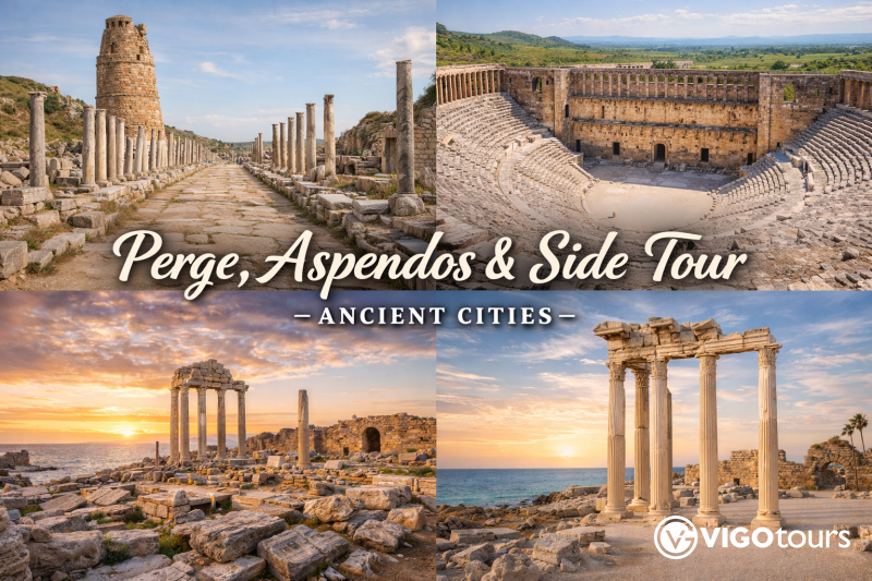 Bu rehberli tur, Perge, Aspendos, Side ve Manavgat Şelalesi'ni keşfederek bölgenin tarihi ve doğal güzelliklerini bir arada görme fırsatı sunar.