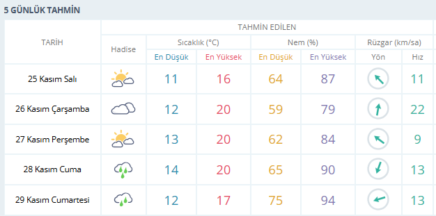 Ortalama yüksek sıcaklık: 13 – 20°C