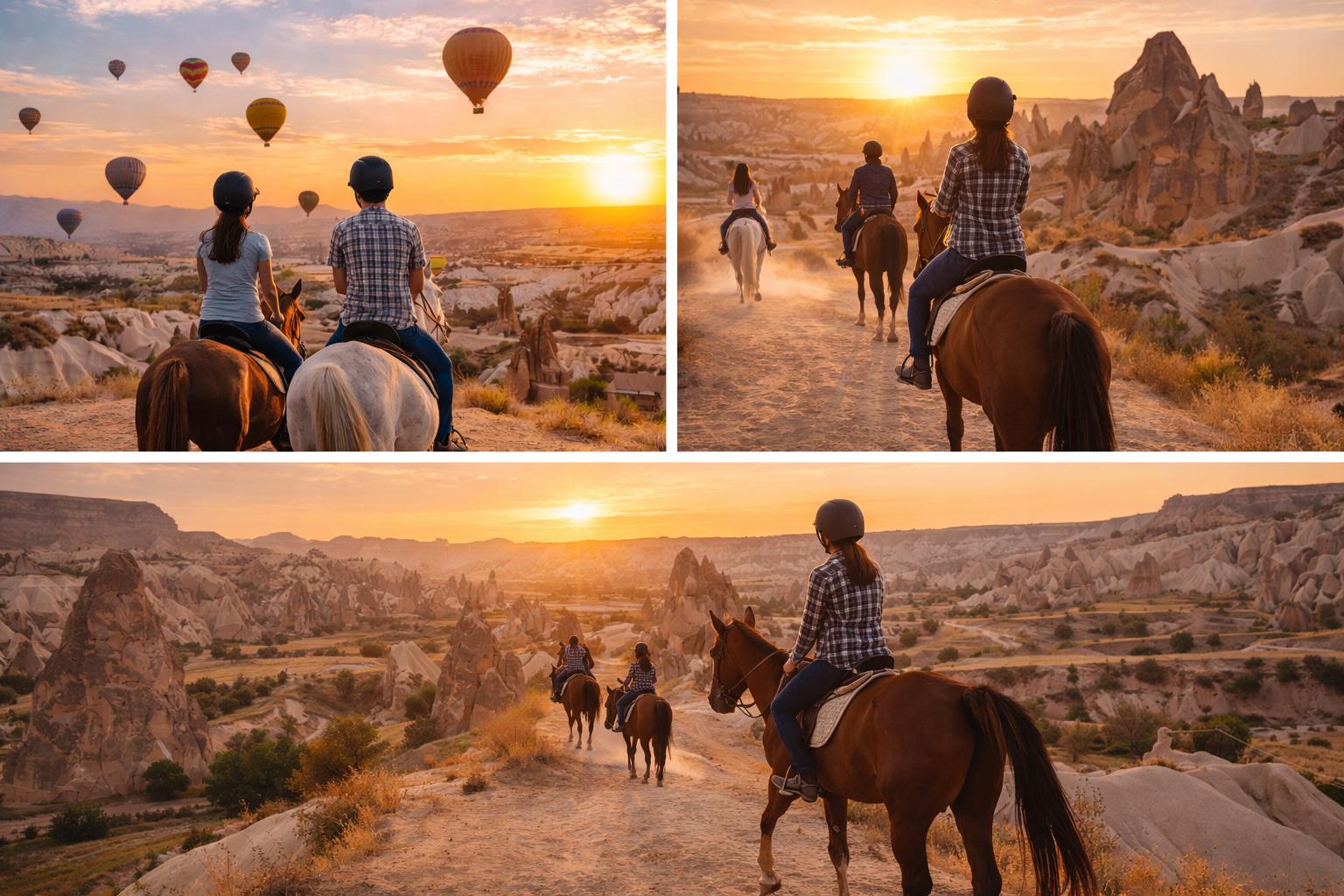 Kapadokya’da farklı zaman dilimlerine ve beklentilere uygun çeşitli at turu alternatifleri sunulmaktadır.