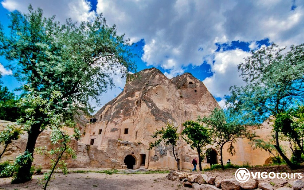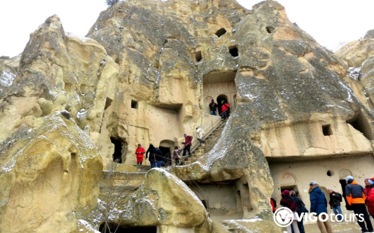 Soğanlı Vadisi, Kapadokya’nın en sakin yürüyüş alanlarından biridir — kubbeli kaya kiliseleri ve huzurlu atmosferiyle öne çıkar. Ziyaret sırasında tarihi kiliseler gezilir ve 20–25 dakikalık kısa bir yürüyüş ile kaya oluşumları ve eski yaşam alanları keşfedilir.