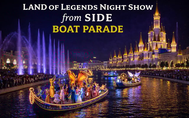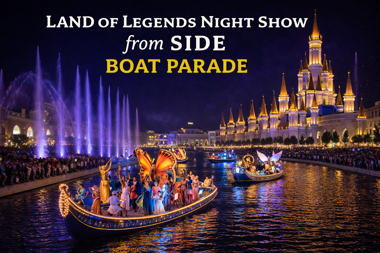 Gece şovunun en dikkat çeken bölümü Land of Legends tekne geçididir. Işıklarla süslenmiş gondollar, kanal boyunca ilerlerken su üzerindeki yansımalar görsel bir şölen oluşturur.