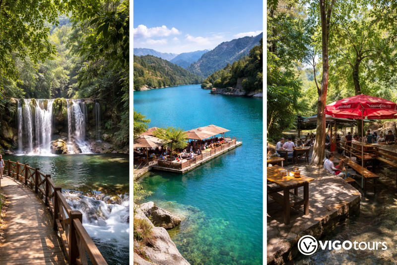 Tur güzergâhı: Manavgat Şelalesi, Yeşil Göl ve 1 saatlik tekne turu, köy ziyareti ve gözleme molası, Yeşil Kanyon molası, Saklı Cennet, cami ziyareti.