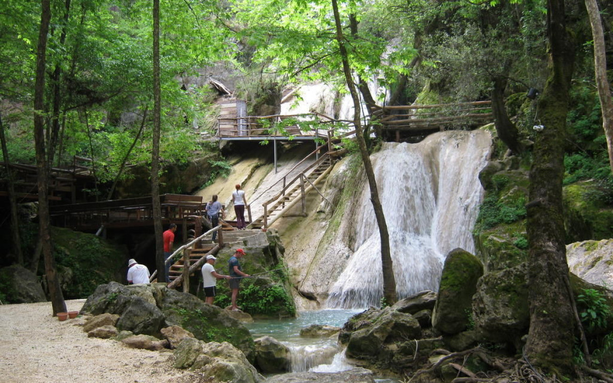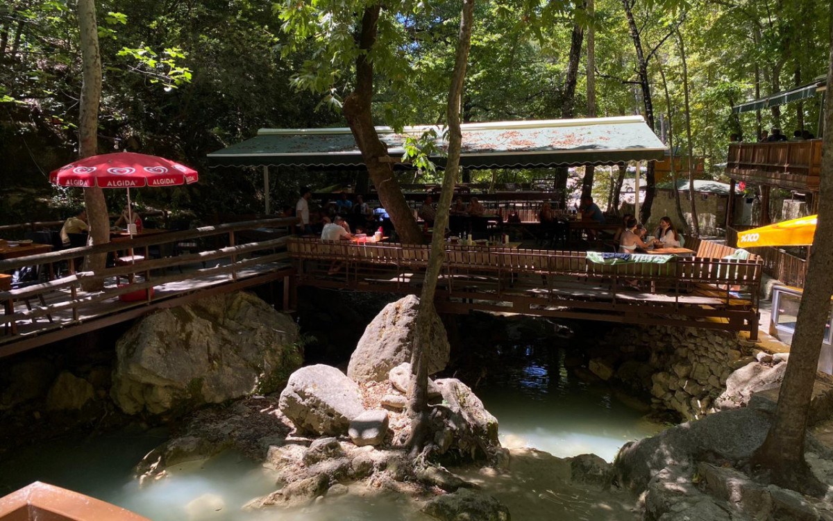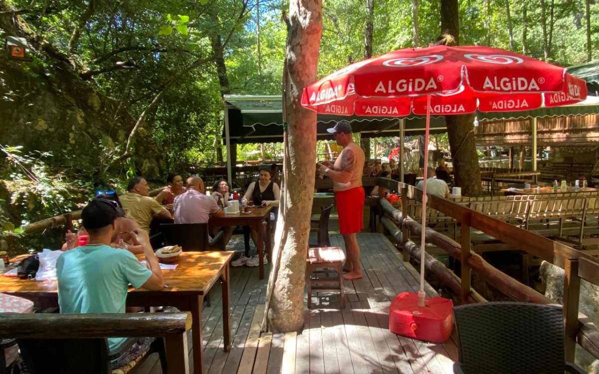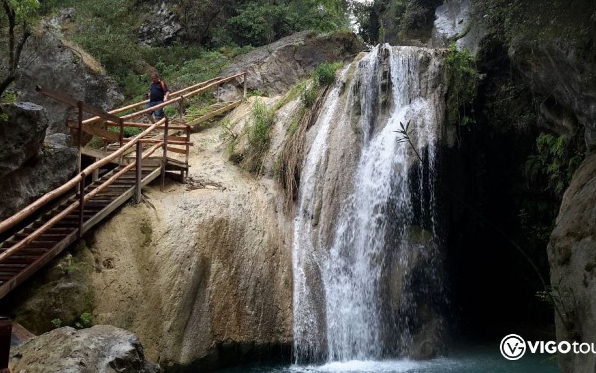 Çam ormanlarıyla çevrili gizli şelaleler — turun en etkileyici doğa duraklarından biridir. Şelalelerin hemen altında yer alan rahat ve aile işletmesi restoranda öğle yemeği sunulur.